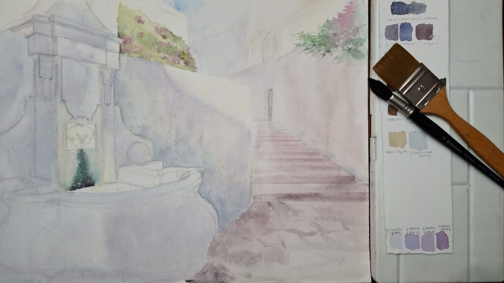4. Primera aguada ligera para sentar la atmósfera.