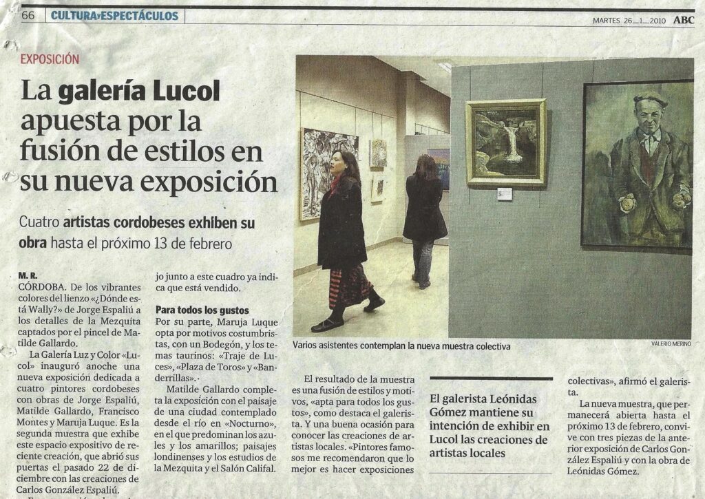 - Exposición en la Galería Lucol. Enero-febrero 2010. Córdoba.