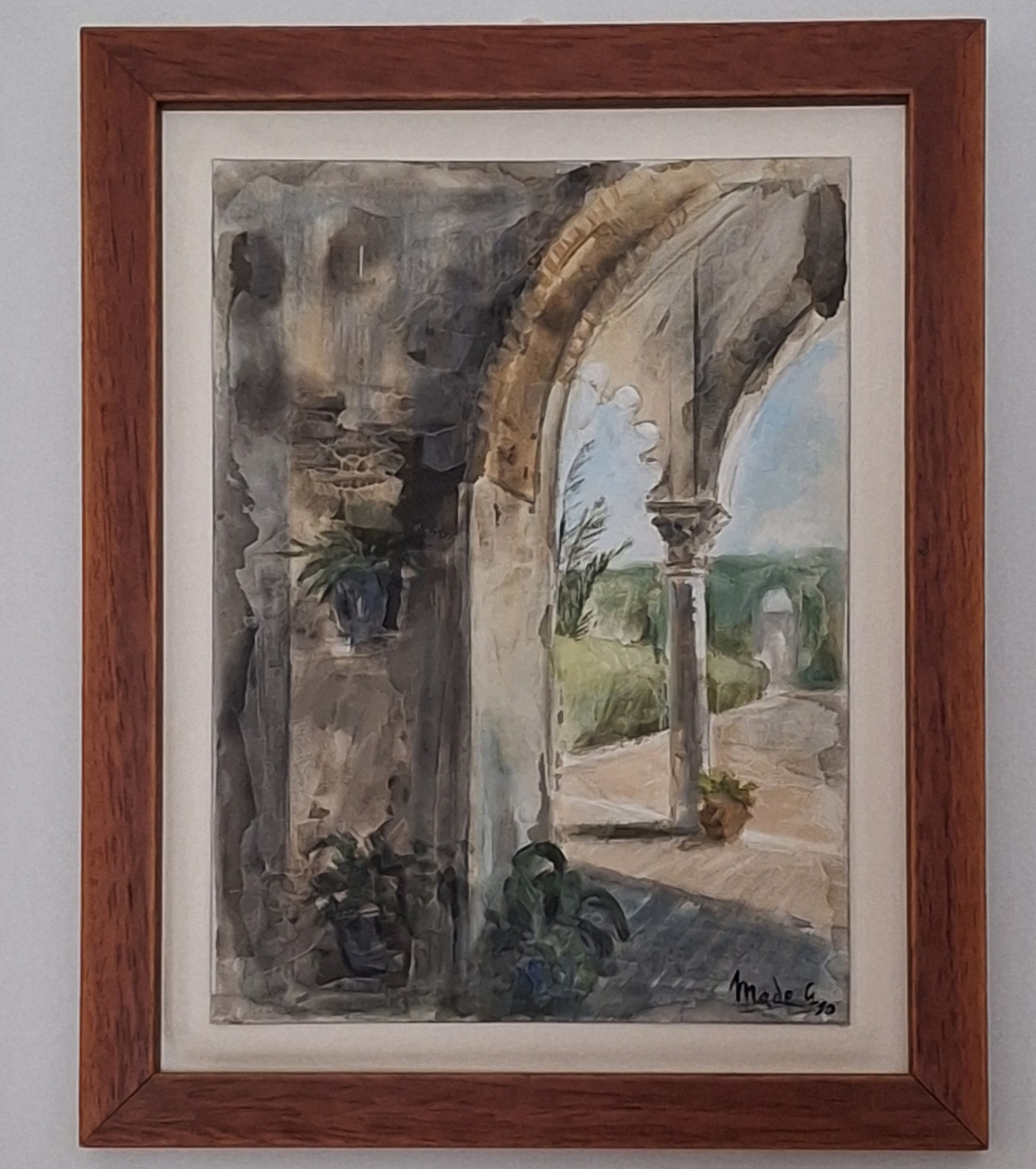 «Patio de las siete revueltas» forma parte de la colección Legado Andalusí y representa un rincón emblemático de Córdoba. Este óleo sobre tabla, enriquecido con texturas y trabajado con técnica mixta (aguada con acrílico y cera diluida), capta la belleza de la arquitectura andaluza desde una perspectiva interior.